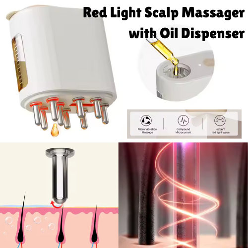 Red Light Massager with Blue & Magenta Lights + Built-In Oil Dispenser